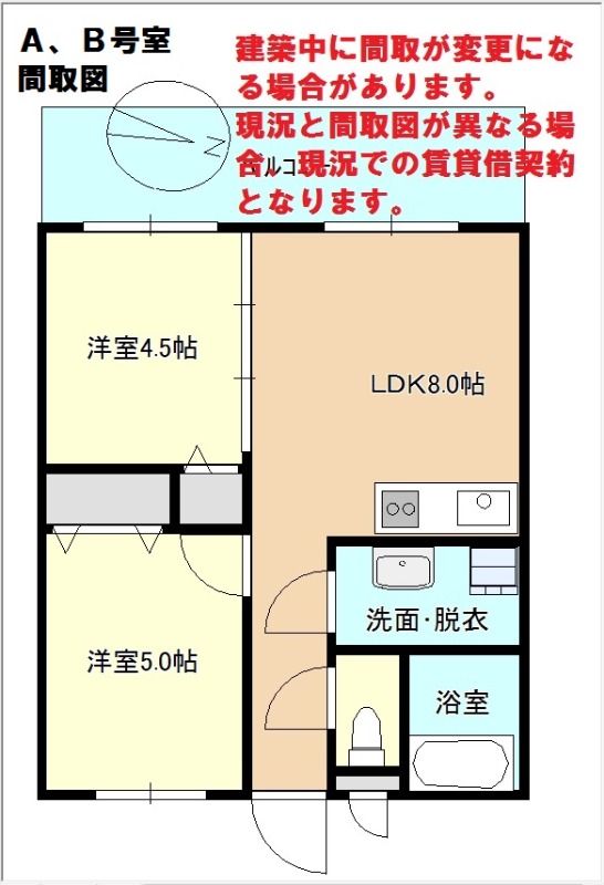| 間取り詳細 | LDK 8畳 、 洋室 5.2畳 、 洋室 4.5畳 |